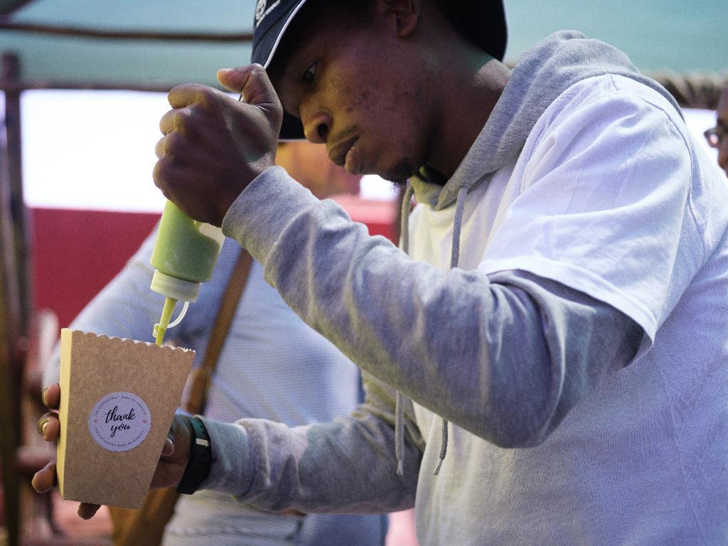 Inspired by how resourceful informal vendors who use bicycles and trailers to reach customers are, Thabang transformed a bin into a clean, eye-catching mobile doughnut station. The result is a business that is mobile, affordable and deeply embedded in the community.